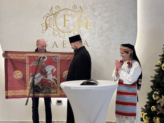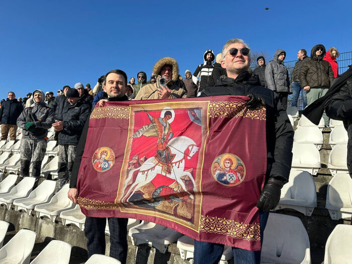 После этой части праздничного мероприятия делегация преподнесла стяг Святого Георгия Победоносца от имени Русского Дома в Белграде и Сретенского монастыря настоятелю храма Святого Георгия на Чукарице протоиерею Драгану Видовичу.
