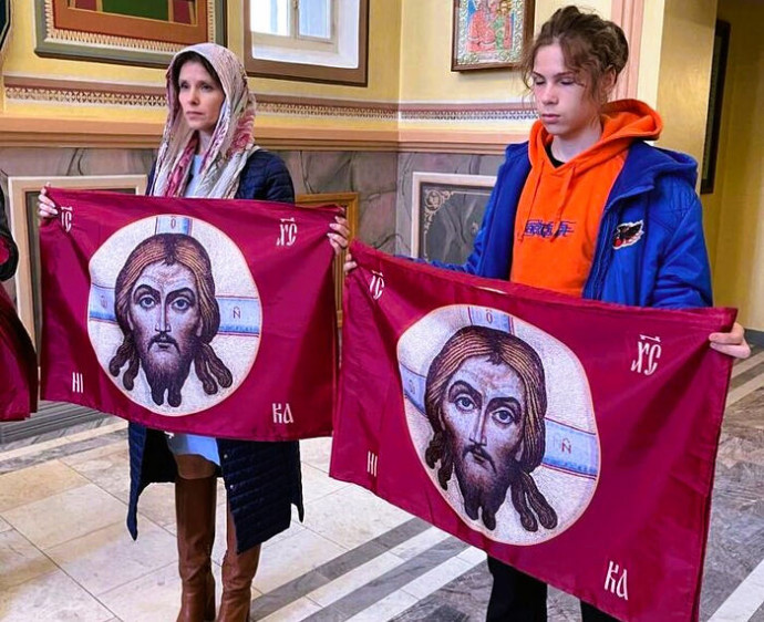 Волонтерскому движению стяги предоставили пензенские благотворители при участии московского Сретенского монастыря, ранее изготовившего эти образы.